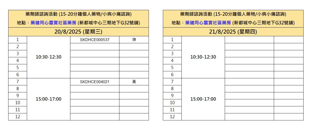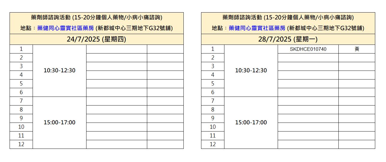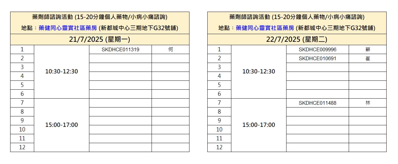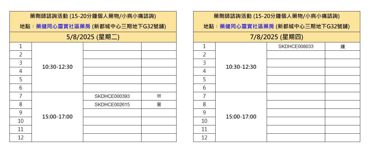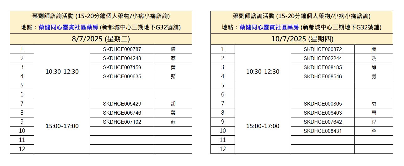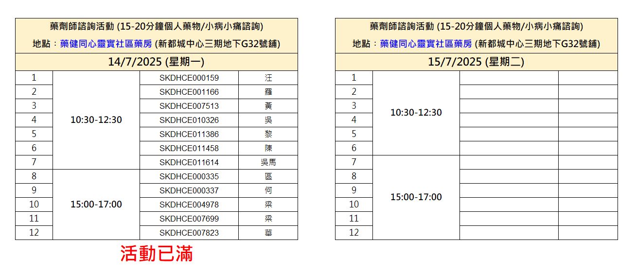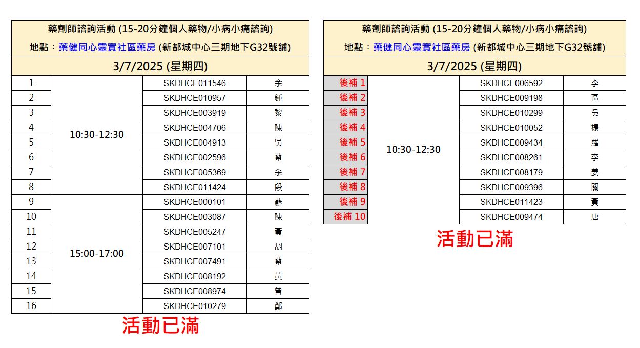 2025年7-8月份活動抽籤結果 (藥劑師面談諮詢)