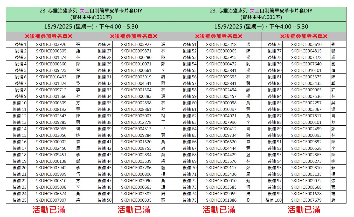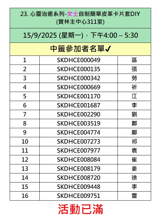 2025年9-10月份活動抽籤結果 (工作坊23-24)