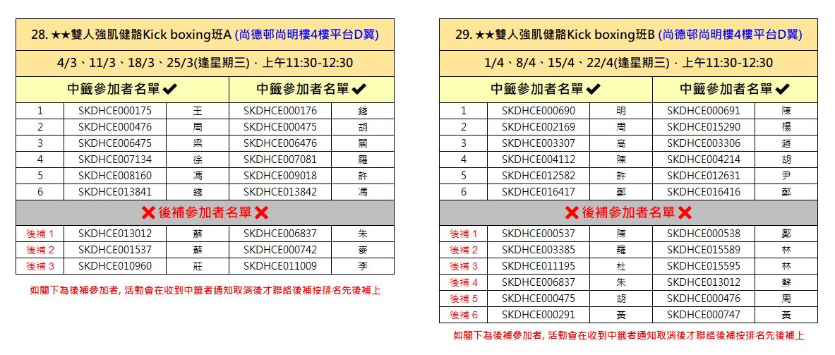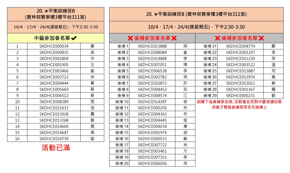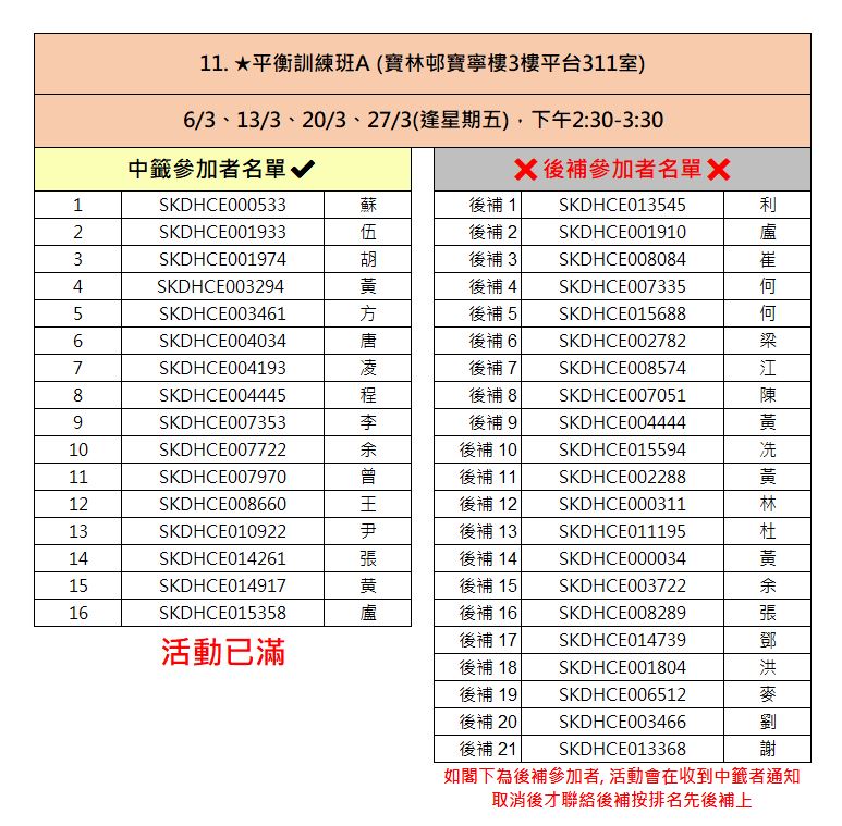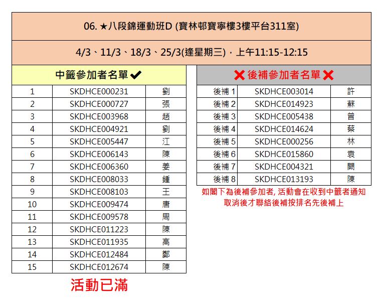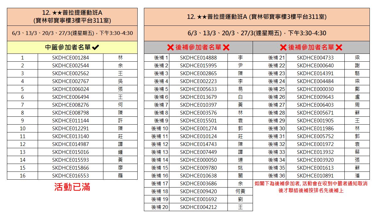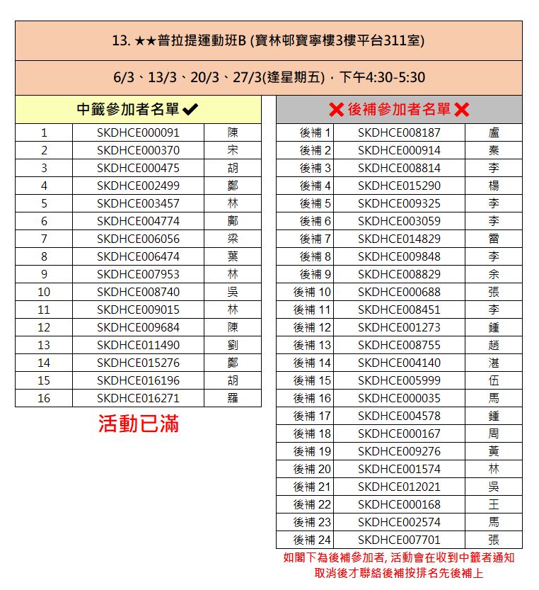 2026年3-4月份活動抽籤結果 (運動班1-29)