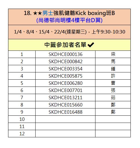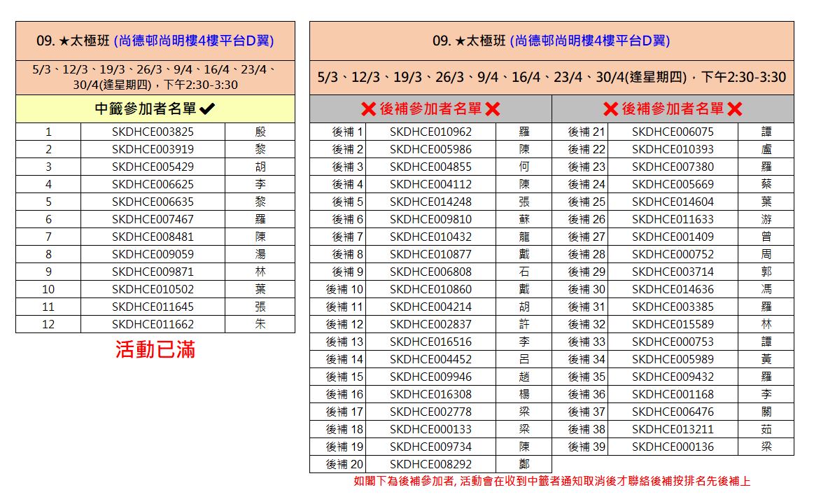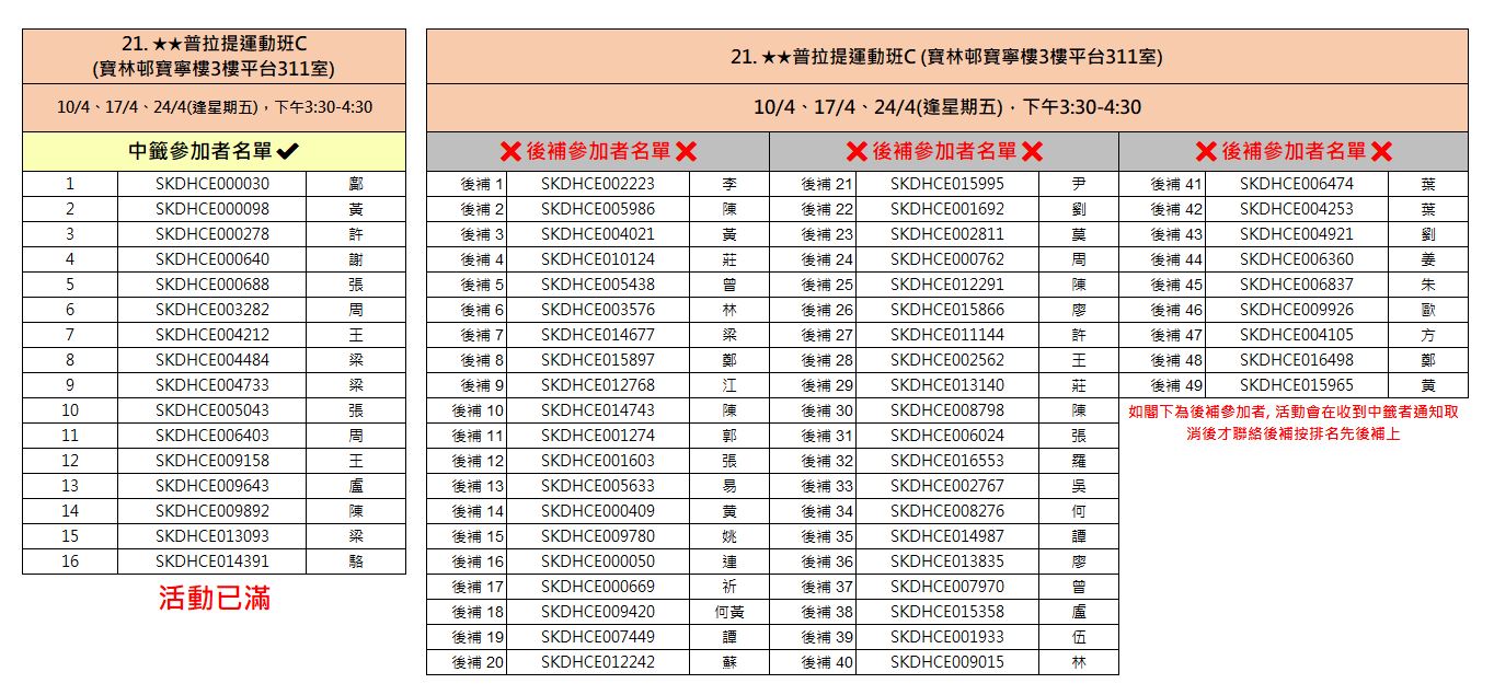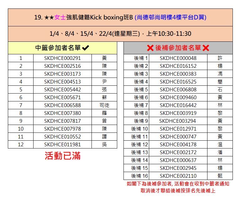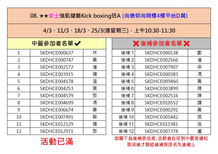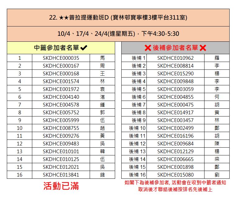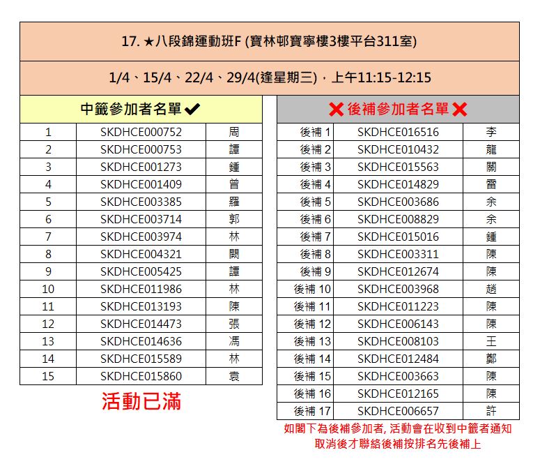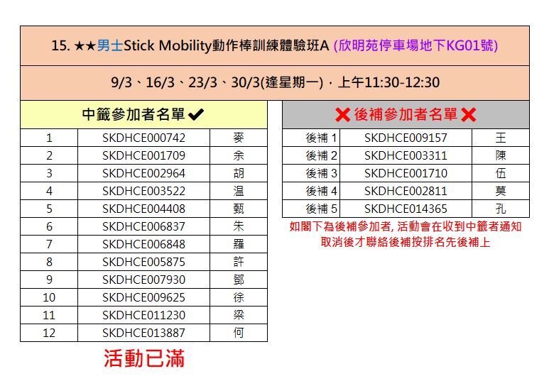 2026年3-4月份活動抽籤結果 (運動班1-29)